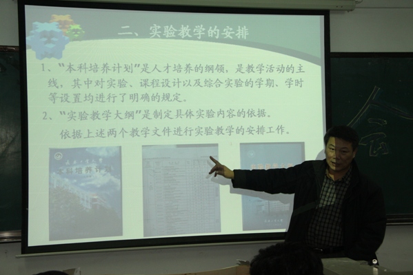 卢院长从实验室的概况、实验教学的安排、实验前的准备工作、实验教学流程、实验教师职责及相关建议六个方面进行全面而系统的阐述,并在讲座的过程中与老师们进行互动和交流自我在实验教学过程中的经验和具体做法。讲座结束后,尤文院长进行总结发言,他说学院抓住了“中地共建”项目、“博士点立项”建设、“重点学科、优秀专业、实验区、新专业”投入以及每年的实验设备改造等多途径和机遇,使实验条件发生了改观,但是由于实验学生多,还存在设备台数偏少、场地狭小等问题依然存在,全院教职员工共同努力下,克服了一定困难,取得了一定的成绩,希望广大实验教学教师尤其是青年教师更加投入和关注实验室建设、发展,为学院全方位育人做出自己应有的贡献。