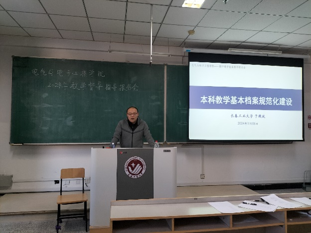 本网讯(通讯员 杨宏韬)进一步加强学院学风建设,营造良好学习氛围,以“学在工大”为活动主题,以“学生忙起来、教师强起来、管理严起来、效果实起来”为目标要求,2024年11月6日(星期三)下午13:30,在南湖校区教学科研楼107室,学院学风建设活动工作专班特邀校督导组组长于微波教授做“本科教学基本档案规范化建设交流”分享报告,报告会由学院副院长杨宏韬主持,控制科学与工程系、电气工程系、仪器科学与技术系、机器人工程系、电工电子基础教学中心的支部书记、主任、副主任及全体教师参加了本次报告会。