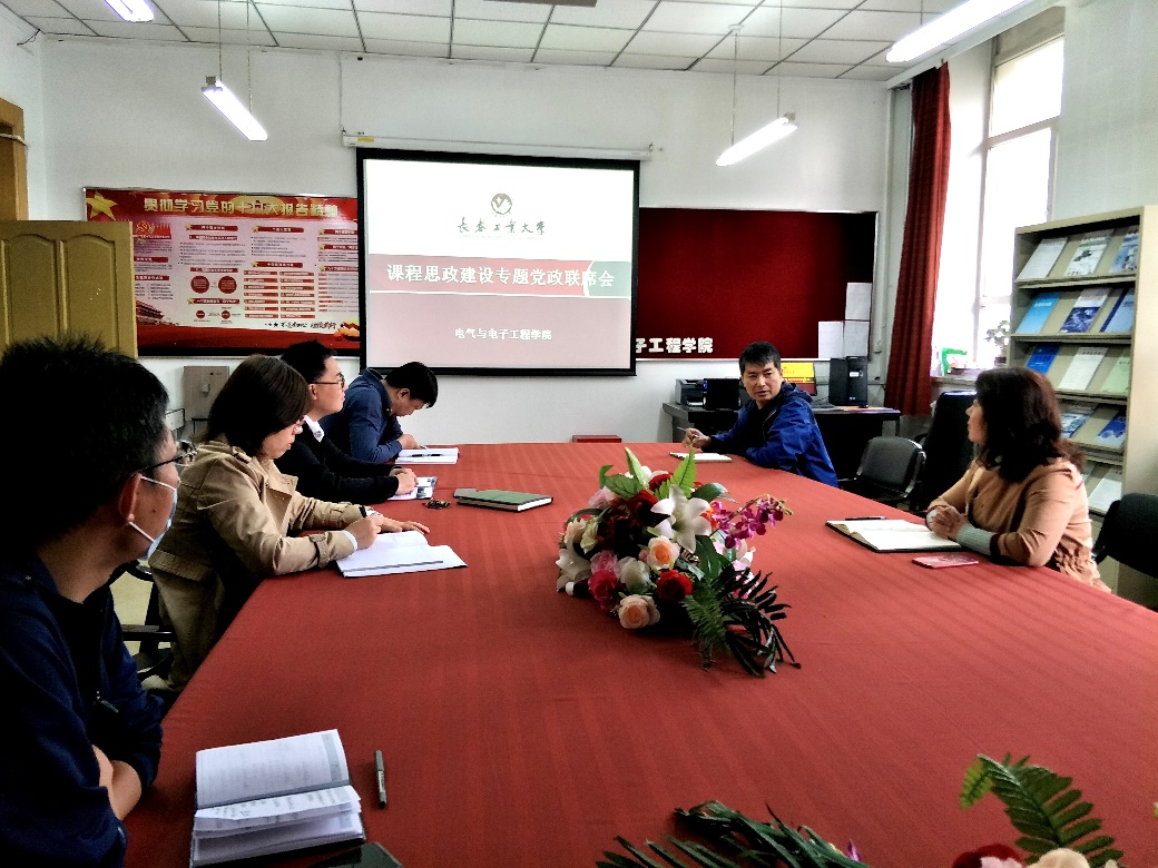 全体班子成员在主楼1303室召开课程思政建设专题党政联席会。