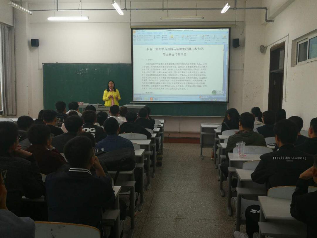 然后,给同学们讲解了推荐所需要的条件:1.全日制本科毕业且获学士学位。2.我校在读的控制科学与工程、控制工程、电气工程、机械工程一级学科下的机械电子工程专业一年级硕士研究生。3.在校所学课程需得到对方的认可。4.修满所有课程学分(赴德前),学习成绩优秀,外语达到B1以上水平,会德语的优先。5.按时缴纳我校的研究生学费。6.能保证在德学习的时间。