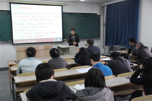报告中围绕“如何培养学生”这一核心的问题,细致地从“育人要顺应社会发展,根据学生思想变化,调整方法”、“分析特质,发挥特长,因材施教,扬长保底”、“正确引导,张弛有度”、“培养人文精神,帮助别人,形成习惯”、“调整角色,晓之以理,动之以情”、“肯付出,肯奉献,才能桃李满天下”等几个方面,即分析了当代大学生的思想现状,又谈到了强化学生培养的思路方法,让与会教师颇受启迪、收益匪浅;同时就青年教师“如何规划自己”这个比较“茫然”的问题,也通过概括的“提升永远有空间,努力永远有弹性,积累永远无止境,奉献永远是主题 ”几句话,对青年教师的未来发展,起到了抛砖引玉的作用。 |