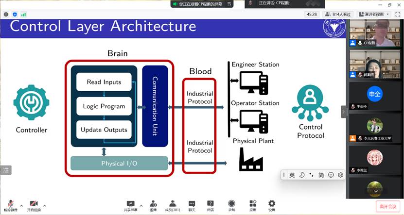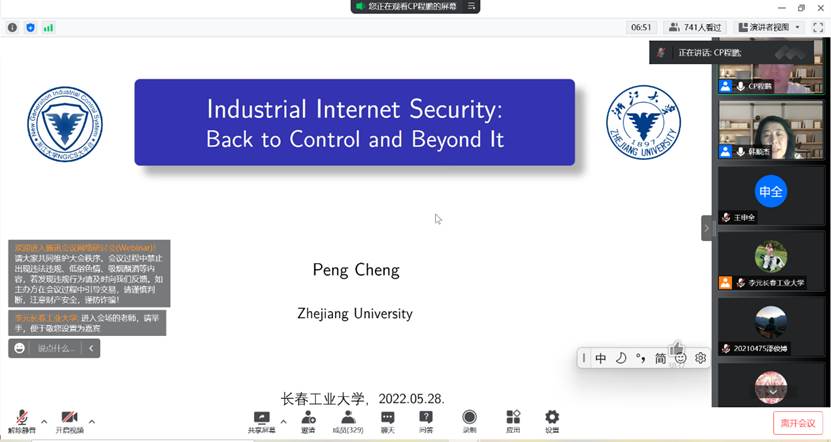 建校70周年纪念活动,学院有幸邀请到浙江大学程鹏教授为学院师生作了题为《工业互联网安全:归于控制,远于控制》的线上学术报告。此项活动由研究院主办,我院承办。报告于5月28日19:00点正式开始,由学院院长韩顺杰主持,全院近400名师生在线听取报告。