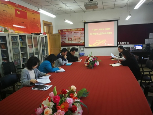 会上,学习了党的十九届四中全会精神和《中共中央关于坚持和完善中国特色社会主义制度、推进国家治理体系和治理能力现代化若干重大问题的决定》有关精神。王丽娜指出,要结合“不忘初心、牢记使命”主题教育,深入学习党的十九届四中全会精神,切实增强政治自觉性和历史使命感。