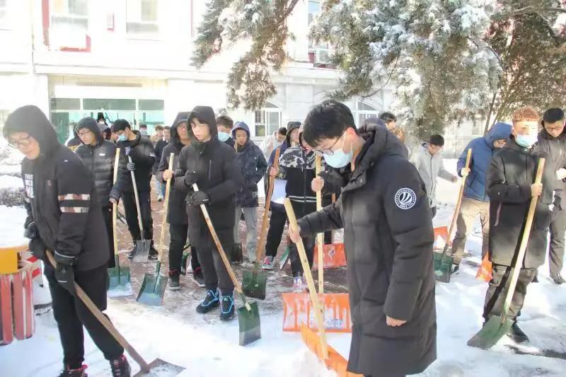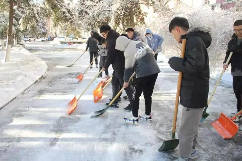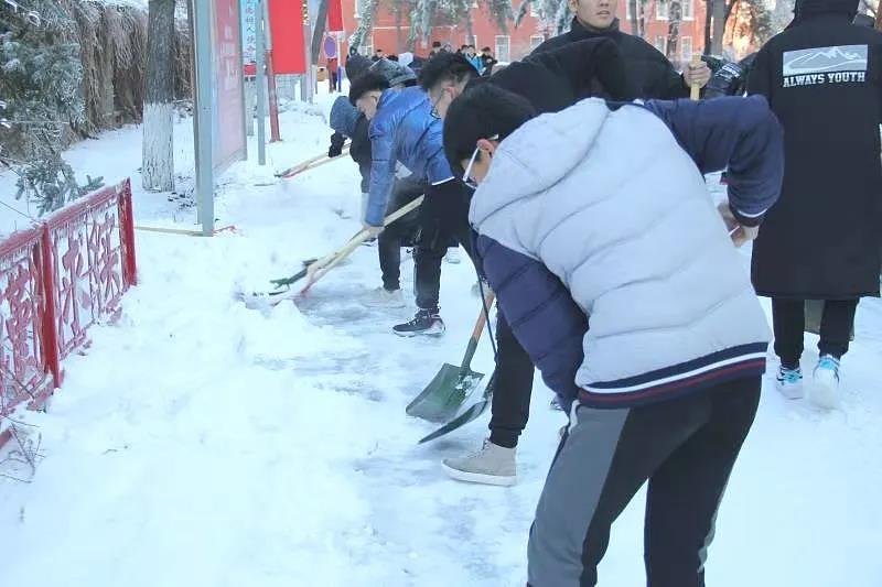 劳动过程中大家齐心协力,配合默契,干得非常起劲,劳动的笑声和铲雪的声音此起彼伏。虽然室外温度很低,但大家劳动的热情和满满的干劲让此间冬日变得格外温暖。