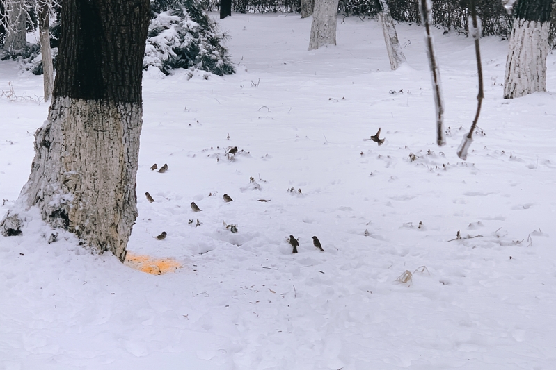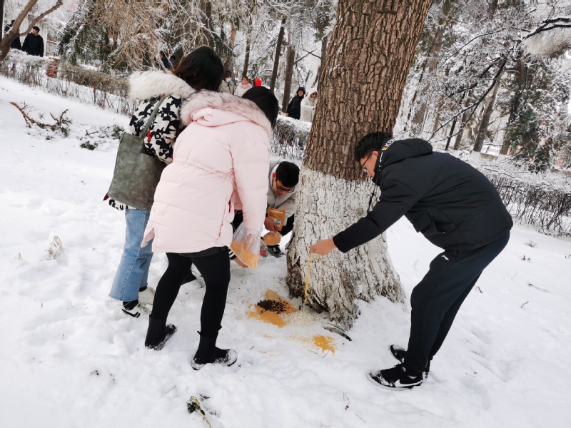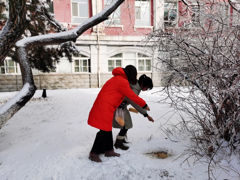 今后,我院研究生党员们会定期组织投喂校园小鸟,帮助它们度过食物短缺的冬天。