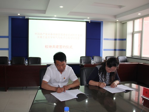 新闻网讯(通讯员 李镇 金蕾)为创新基层党建工作载体,提高基层党建工作水平,增强服务社会能力。6月7日,双德乡前进村党总支部联合我院于中共长春市朝阳区双德乡前进村总支部委员会共同举行校地共建签约仪式。双德乡党委书记吴树清,党委副书记肖琨,党委组织委员、前进村第一书记韩扬,党办主任江浩然,以及我院党委书记王丽娜,党委副书记矫东海,副处级专职组织员李昆,控制科学与工程系党支部书记于微波,电气工程系党支部书记侯云海,电工电子基础教学中心党支部书记黄艳秋,团委书记高博,专职学生党支部书记单洪朱出席本次仪式。前进村全体支部委员参加本次仪式。