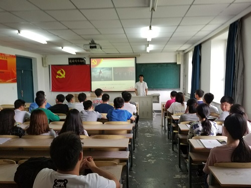 为深入学习贯彻党的十九大精神,团结引导学生党员继承革命先辈遗志,2018年6月20日中午12时30分,学院学生第二党支部于主楼1401室举办“中国共产党党史”主题党课。本次党课由学生第二党支部书记朱博主讲,学生第二党支部全体学生党员参加本次党课。