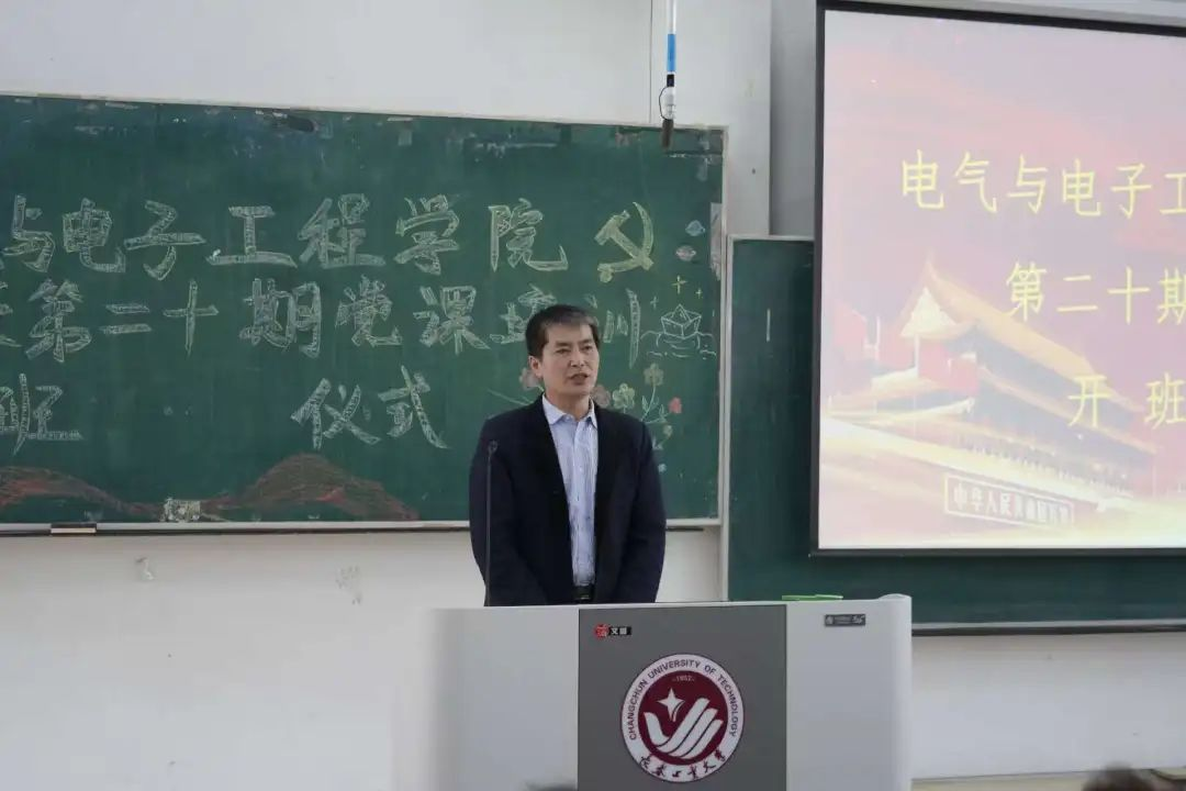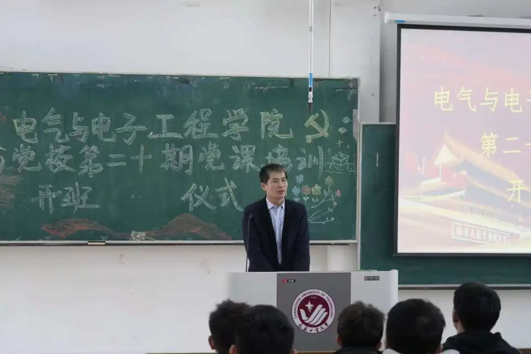 学院党委书记杨景伟致辞,他强调党课培训是党员发展工作的重要环节,对提高学员思想政治觉悟、加强党性修养具有关键作用。希望全体学员珍惜学习机会,深刻领悟党的理论,以实际行动践行初心使命,在学习和生活中发挥先锋模范作用。