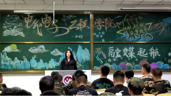 宣传部常务副部长兼融媒体运营中心副主任王斯琦为2025级新生介绍学院公众号平台,并系统阐述了51吃瓜