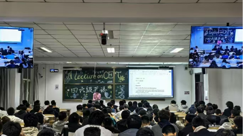 培训会上,主讲老师讲解了英语四六级考试中阅读理解部分的重要性和考试要点。老师分析了不同类型阅读题目的解题技巧,进行了演示。