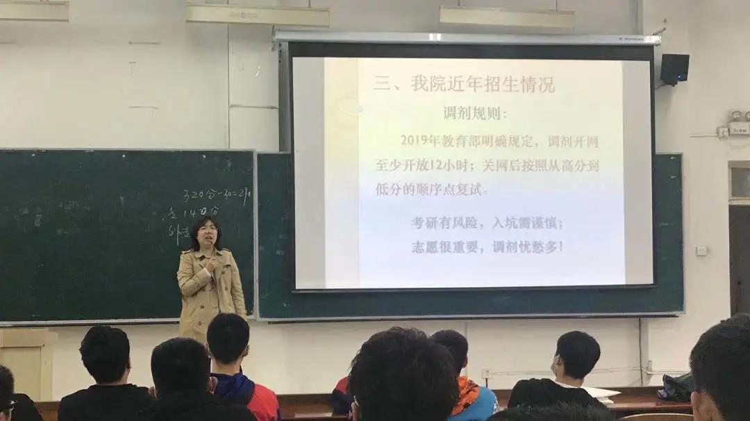 会议接近尾声,刘帅师副院长告诫同学们:考研有风险,入坑需谨慎,志愿很重要,调剂忧愁多。准确认识自己,树立明确目标。