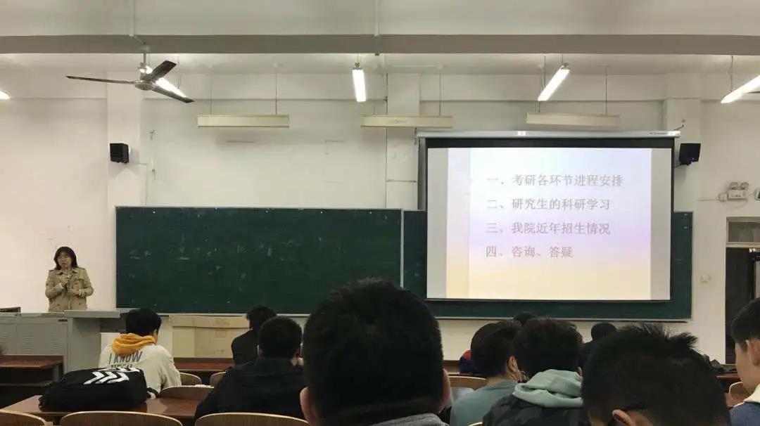 刘帅师副院长为学生们分析目前考研和就业形势,体现了对学生的重视、关心和厚爱。接着为同学们考研做四点宣讲。