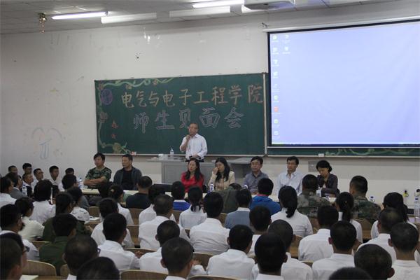 | (通讯员 元俊善)为了让2014级新生同学进一步了解学院和专业情况,学院于9月5日下午6时,在北湖校区西阶202教室举办了2014级新生师生见面及专业介绍会。学院党委书记王丽娜,学院院长李元春,副院长卢秀和,院长助理刘帅师,各教研室主任,团委书记、新生辅导员以及2014级各班级班导师出席了本次见面会。会议由学院党委副书记矫东海主持。