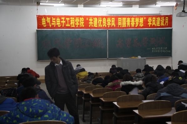 学习部和“学习的革命”研究会分会在北湖校区西阶教室举行“共建优良学风同圆青春梦想”学风建设月系列活动之高等数学测试。学院学生党支部书记朱博、辅导员助理冷帅及部分学生干部担任监考。
