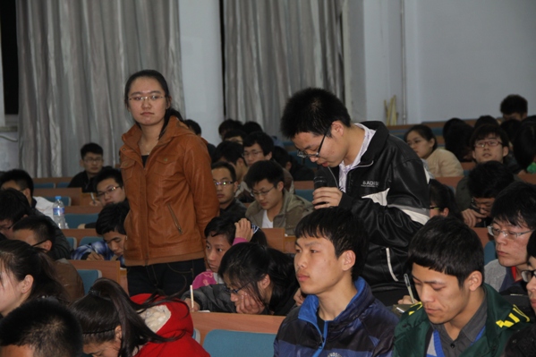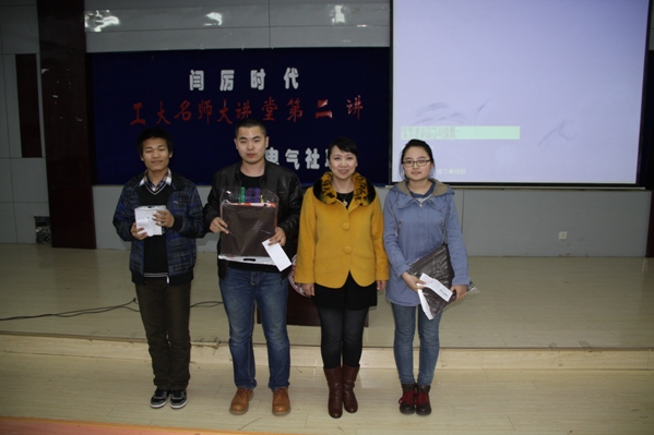 在同学们热烈的掌声中,主持人向大家介绍了闫厉老师。闫厉教授是基础科学学院数学教研室主任,吉林省教学名师,硕士生导师,吉林省工业与应用数学学会常务理事。省优秀教学团队“高等数学教学团队”带头人,省精品课《高等数学》课程负责人,省优秀课《线性代数》、《概率论》课程负责人。主讲高等数学等十余门课程;主持教研及科研项目二十余项;发表教学及科研论文30余篇;近五年公开出版教材五部。在组织与指导学生参加全国大学生数学建模竞赛活动中,取得突出成绩,获得国家一等奖两项,二等奖四项,为学校赢得了荣誉。在本次讲座中闫老师针对考研中的一些问题以及数学建模竞赛的问题向同学们进行了讲解,并对同学们提出的问题耐心的解答。她表示机会是留给有准备的人的,她可以告诉同学们方法,但真正地实践还得靠同学们自己,她希望同学们通过自己的努力可以获得成功。最后,闫老师代表协会为积极参与的同学颁发由中国电信提供的小礼品。