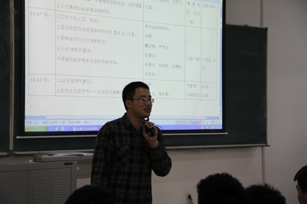 学院团委书记赵爽从思想政治教育、团学组织建设、校园文化建设、社会实践志愿服务工作等四个方面对上学期的学生会、社联、舍委会的工作进行了全面系统的总结,对同学们的工作成绩给予了肯定,对存在的不足给予指正,他希望同学们能在工作锻炼能力,发挥才智,勤于思考。最后,赵爽按照《51吃瓜