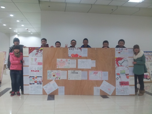 参赛作品来自12级14个班级,共14件作品,每份作品都经过精心准备,细心描绘,体现出同学们构思的缜密,绘画的精湛。参赛作品紧紧围绕比赛的主题,不仅画的贴合主题,文章也写出了同学们对一二·九精神的深刻理解。最终经过学生会的评审,120305班获得一等奖,120303班与120313班获得二等奖,120311班、120307班与120310班获得三等奖。