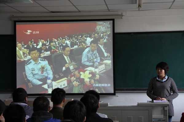 | (通讯员 孙淼)按照学校校史校情教育活动的要求,使全院学生充分了解校史校情,培养全院学生对学校的热爱从而更好的建设和谐工大,10月19日中午于主楼1401,学院举办时事政治月月谈之甲子辉煌。学院学生党支部书记郑洪斌、团委书记赵爽及全体红旗社骨干参加了此次会议。