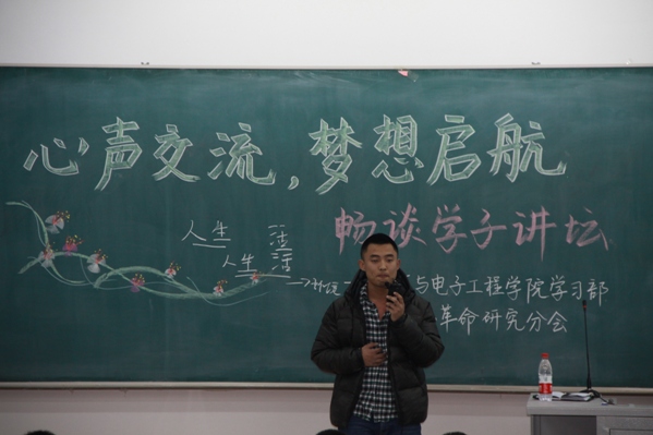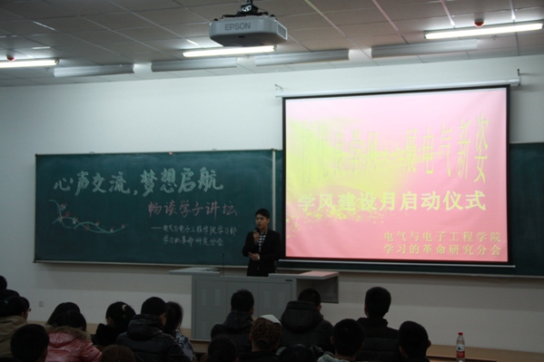 | (通讯员 隋吉雷)为了帮助2012级学生对于刚刚开始的大学学习生活有全面的了解和认识,更快地适应大学学习生活,明确发展方向。11月18日晚6点,学院在北湖校区302教室举行了“树优良学风,展电气新姿”学风建设月启动仪式暨“心声交流,梦想起航”畅谈学子讲坛活动,学院辅导员助理高灿出席活动。活动由学习部副部长宋冰主持。