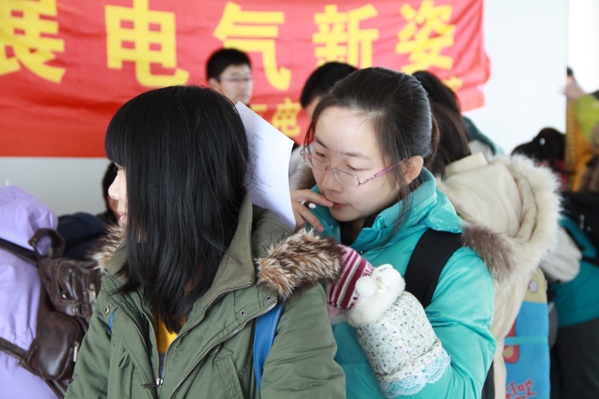 | (通讯员 郭小龙)为贯彻落实校学团系统落实《教育部关于全面提高高等教育质量的若干意见》的工作方案,学院学习部于2012年11月19日上午9:30分在北湖校区主楼大厅开展了学风建设月系列活动之“我看学风建设”学风调查问卷活动。北湖校区各学院新生同学踊跃参加,认真填写调查问卷。