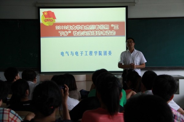 | (通讯员 史梦婷)7月6日12点半,学院团委于我校教学主楼1401室召开了2012年大学生志愿者暑期“三下乡”社会实践活动布置会,学院各班团支部成员参加会议。学院团委书记赵爽老师主持会议。