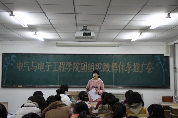团委组织微博体系推广会”。校团委组织部杜建、学院全体团支部书记参加此次会议。