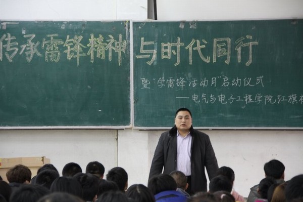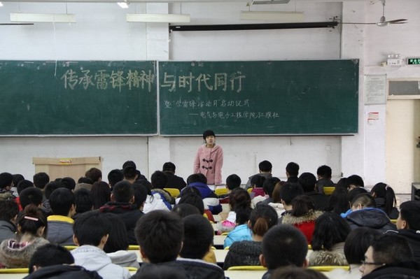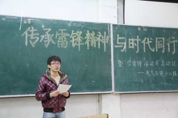 委员会在全校深入开展学雷锋活动的实施意见》,3月9日12:30,学院红旗社在综合一教室举办“学雷锋活动月”启动仪式。参加本次启动仪式的有学生党支部书记郑洪斌老师,团委副书记徐乐、于洋,学生会主席徐超,秘书长徐骁,舍委会主任王野。