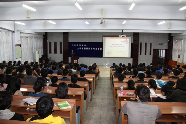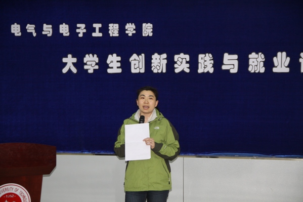 | (通讯员 张博傲)为了帮助同学加深对专业认知,提高学生创新实践和就业能力。4月11日下午6:00,学院在南湖校区综合楼报告厅举行了大学生创新实践与就业讲座。学院邀请了台湾凌阳爱普集团北京分公司南北大区经理王浩主讲,学院控制工程系党支部书记、110301班班导师于微波,学生党支部书记赵爽老师和一二年级部分学生参加了讲座。