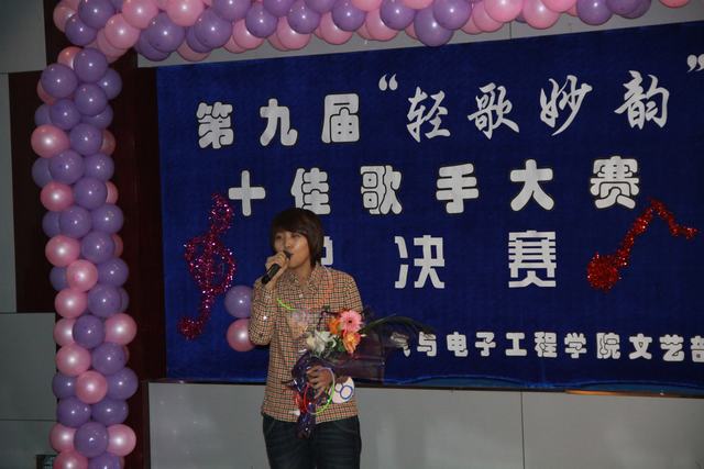 | (通讯员 蒋伟龙 宫廷)12月17日18:00,我院文艺部在我校南湖校区综合三报告厅举办了第九届“轻歌妙韵”十佳歌手大赛决赛。出席的嘉宾有学院团委书记矫东海,学生党支部书记赵爽老师,团委副书记于洋、徐乐,学生会主席徐超,舍委会主任王野,学生会副主席刘旭,学生会秘书长徐骁,以及兄弟学院主要学生干部代表。担任此次比赛的评委有校街舞团团长李怀宇,化学与工程学院文艺部部长鲁欣,化学与生命学院文艺部部长张骁,校十佳歌手冠军高文典,学院团委文艺部部长兼艺术团团长包健。
