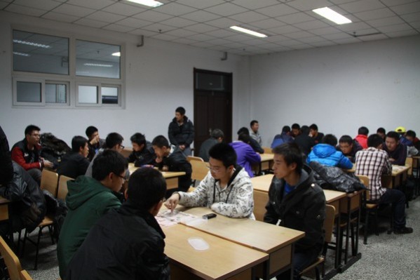 11级的14个班,总计28名棋手。以班为单位,每班两人进行2对2对抗赛。首先由比赛负责人宣布比赛规则,强调公平,公正,公开.简短的介绍之后,就是选手之间的厮杀了,车马炮各司其职,小卒奋力向前。都向对方的主帅发起最有力的进攻。经过一轮轮的进攻,终有一方不敌对手败下阵来。最终100305,100306,100308,100309,100311,100312,100313班战胜对手晋级。