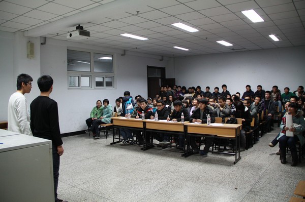 | 11月23日,24日晚在科研楼604教室我院文艺部和宣传部联合举办的11届相声小品大赛即“大笑江湖”相声小品大赛开赛。出席此次比赛的嘉宾有校文艺部部长王赫楠,学院学生会副主席刘旭,团委文艺部部长包健,宣传部部长张甲子,社团联合会相声小品协会会长张振国以及五项评比组组长刘沂欣。