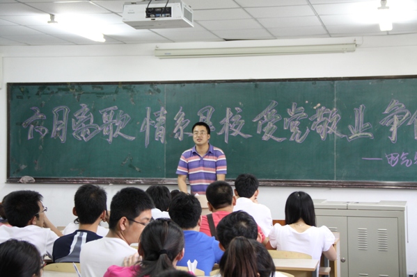我院举行“六月离歌情系母校爱党敬业争当先锋”毕业生党员教育会 为了加强毕业生党员教育管理,按照学院学生党支部“创先争优”活动具体安排,我院于6月17日晚5时在主楼1401室举行“六月离歌情系母校爱党敬业争当先锋”毕业生党员教育会。学生党支部书记赵爽老师参加了活动。