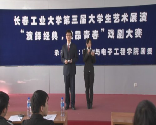 第三届大学生艺术展演“演绎经典,激昂青春”戏剧大赛初赛于3月27日9:00在南湖校区综合报告厅如期举行。校团委邵捷老师,我院团委书记矫东海,校学生会文艺部部长齐明洋,我院学生会主席杨奥棋,副主席李怀宇等作为嘉宾出席了本次比赛。