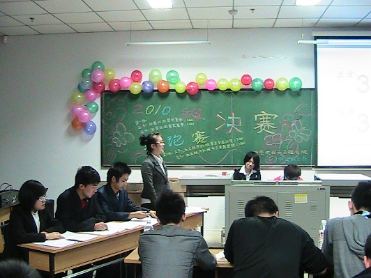 | 我院举行辩论赛决赛 2010年11月29日,我院在南湖校区教学科研楼612教室举办辩论赛决赛,比赛由校文艺部部长齐明洋、院社团联合会主席李佳俊、学生会副主席隋成阳、副主席柴源、舍委会主任闫平、辩论之星协会会长赵岩担任本场比赛的评委。
