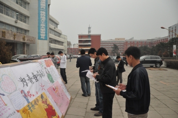 为青春喝彩 ——我院举行纪念五.四运动九十一周年手抄报比赛 2010年5月4日下午4点整,我院学生会宣传部组织09级学生举行了“为青春喝彩”纪念五.四运动九十一周年手抄报比赛。手抄报在我校老图书馆前展出,供广大同学评阅。白城师范学院机械电子工程系辅导员纪长亮,学院党委副书记周文军,团委书记矫东海,学生党支部书记郑洪斌、赵爽,学生工作办公室辅导员单洪朱,高博,朱博老师参加最终评比。