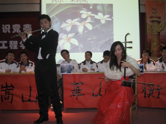 经过初赛的激烈角逐,最终090306班、090307班、090308班、090309班、090312班共五支代表队进入了决赛。比赛共分为明辨是非、百里挑一、千思万想、绝处逢生四个环节,各个代表队都充分发挥自己的实力,现场气氛热烈。尤其在“千思万想”环节,队员们配合默契,幽默中不乏机智。二胡独奏——茉莉花为在场的选手和观众带来了美妙的听觉享受,博得了现场观众的阵阵喝彩。090306班代表队赢得了挑战上届擂主080312班代表队争夺擂主的机会,并一鼓作气摘得擂主的桂冠。最后,由学院秘书处全体成员表演手语舞《国家》,为本次活动画上了圆满的句号。