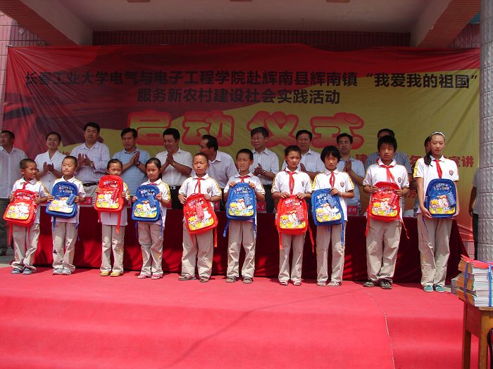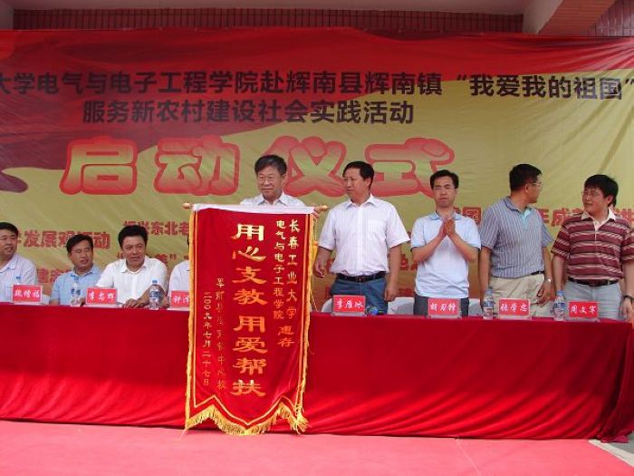 | 为了贯彻落实团中央、团省、市委和校团委关于开展大学生志愿者暑期“三下乡”社会实践活动的号召,使青年学生深入学习实践科学发展观,树立坚定的爱国主义信念,磨炼意志品质,增长实践才能,彰显人生价值,我院于暑期组织开展了“我爱我的祖国”服务新农村建设社会实践活动。 7月27日,社会实践活动启动仪式在辉南县辉南镇希望小学隆重举行。校党委副书记杨长生、辉南县委副书记钟泽秀等领导出席启动仪式。仪式上,辉南县委副书记钟泽秀致欢迎词,校党委副书记杨长生发表讲话。杨书记指出,开展好今年的社会实践活动对于青年学生深入学习十七大精神,学习、宣传、实践科学发展观,激发大学生开拓进取,奋发成才的主动性、积极性和创造性,增强大学生建设祖国,振兴中华的责任感、使命感和紧迫感,都具有十分重要的意义。杨书记希望大学生志愿者们在实践活动中本着“受教育、长才干、做贡献”的原则,发挥好大学生的文化优势,弘扬科学精神,传播科技新风,结合农村的实际需要,切实为农村解决一些实际困难,为农村的三个文明建设做贡献。也希望大学生志愿者们珍惜这一难得的实践机会,紧密结合自身成长成才的需求,大胆探索,勇于实践,与时俱进,开拓创新,在社会实践这一大课堂中历练自我,全面成才,为实现全面建设小康社会的宏伟目标而努力奋斗! 双方领导为社会实践基地揭牌,杨书记代表学校为希望小学捐赠2台电脑、3000余册图书和大量文具及体育用品。辉南县委和希望小学还分别向学校赠送了锦旗和书画作品。学校学生工作处长李雁冰、团委副书记胡刃锋、学院党委书记张学忠、副书记周文军,辉南县委办公室主任、宣传部长、教育局长、团委书记等出席了启动仪式。启动仪式结束后,双方领导参观了希望小学和大学生社会实践现场。  此次社会实践活动历时5天。大学生志愿者在希望小学举办了数学、语文、英语特色辅导班,大学生与小学生学习、成才交流会,开设了电脑展示课、播放了历史影片,举行了建国60周年成就图片展,开展了社会主义新农村政策宣传,为当地老乡免费检测和维修家电。志愿者还走访了困难小学生家庭,参观了当地特色企业,深入农田体验劳动生活,到当地村委会开展挂职锻炼体验活动。 此次社会实践活动得到了吉林教育电视台和辉南县电视台的采访报道。 |