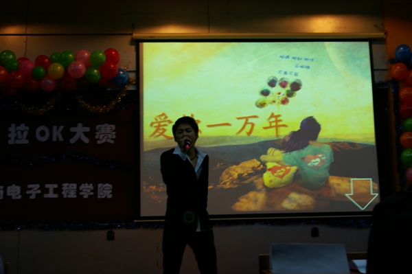 | 2009年11月30日晚6时30分,我院在我校南湖校区综合楼报告厅举办了第七届“轻歌妙韵”卡拉OK大赛。学院党委副书记周文军,团委书记矫东海,学生工作办公室郑洪斌、赵爽、单洪朱、高博、朱博老师,校学生会主席韩天闻、副主席冯亮观看了本次大赛。
