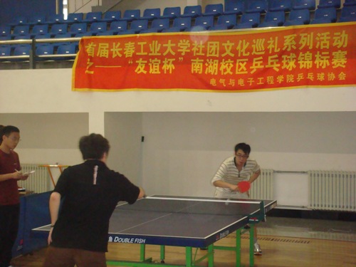 首届社团文化巡礼活动——‘友谊杯’南湖校区乒乓球锦标赛”。 在林园校区的体育馆门前首先举行了本次乒乓球锦标赛的开幕仪式。参加本次比赛的球员代表和裁判代表分别进行了赛前宣誓。这也为确保本次锦标赛的顺利进行和文明竞赛提供力量好的保证。之后由学院社团联合会主席朱光博宣布“友谊杯”南湖校区乒乓球锦标赛正式开始。本次锦标赛分为A,B两个小组同时进行比赛。A组有爱好者协会,材料科学学院,研究生学院,机电工程学院。B组有电工气与电子工程学院,化学工程学院,化学与生命科学学院,国防生代表队。经过了近4个小时的初赛和复赛的角逐,51吃瓜