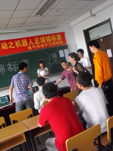 、计算机科学与工程学院、化学工程学院、信息传播工程学院6个学院近200名同学报名参赛。从2009年4月起,在南湖校区主楼机房,由我院组织专业教师对参赛选手进行了为期2个月的系统培训与指导。经过两天的初赛和复赛,共有12支队伍分别进入了5人制和11人制机器人足球锦标赛最终的决赛,冠,亚,季军分别产生。在5人制机器人足球比赛中我院包揽了冠亚军,季军是计算机科学与工程学院;11人制机器人足球比赛冠亚军同样被我院包揽,季军队伍是信息传播工程学院和化学工程学院。