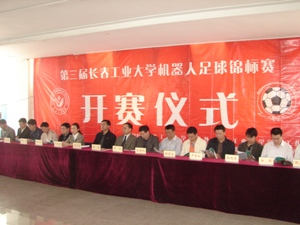 机器人足球锦标赛决赛开赛仪式在南湖校区主教学楼三楼中厅隆重举行。本次比赛得到了学校领导的高度重视,副校长熙莹教授、教务处处长王占礼教授、校团委书记李东玲、教务处副处长张宝昌应邀出席了本次开赛仪式。光临仪式现场的嘉宾还有我院院长尤文教授、党总支书记张学忠、副书记周文军以及各参赛学院团委书记。我院团委书记矫东海主持了开赛仪式。 副校长熙莹教授代表学校对本届机器人足球锦标赛的成功开赛表示祝贺,他希望广大同学能够利用比赛契机,培养独立思考能力、强化实践操作技能,增强团队意识、发扬协作精神,在实战中受锻炼、增才干。同时,他祝愿同学们在比赛中比出水平、赛出成绩,在奥运会来临之际,再创佳绩,为校争光。 指导教师张袅娜在仪式上公布了本届机器人足球锦标赛的赛程安排。最后,各位领导、嘉宾为参赛各代表队“开球”。 本届机器人足球锦标赛从2007年11月20日开始报名,共有来自机电工程学院、材料科学与工程学院、51吃瓜