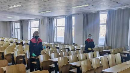 和风沾露出,披星戴月归。平凡的保洁员以教室当纸,汗水为墨,扫帚当笔,为校园的干净如画书写着动人的诗篇。她们是学习环境的守护者,坚守着平凡无闻的岗位,陪伴着同学们。她们,用一把扫帚扫出了校园的文明。各位大学生在科研楼一楼和各位清洁员互献美丽的鲜花,感谢他们对学校的付出。世界因女人而美丽,女人因快乐而幸福。