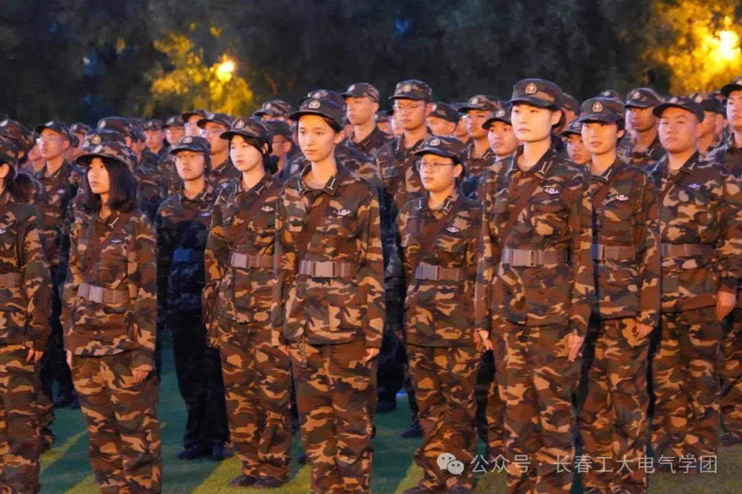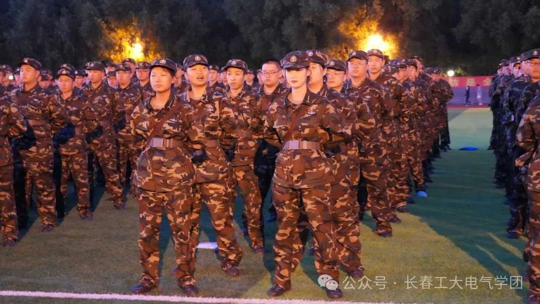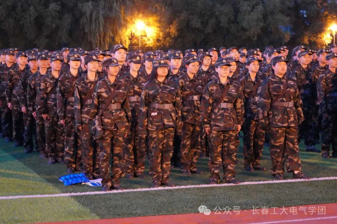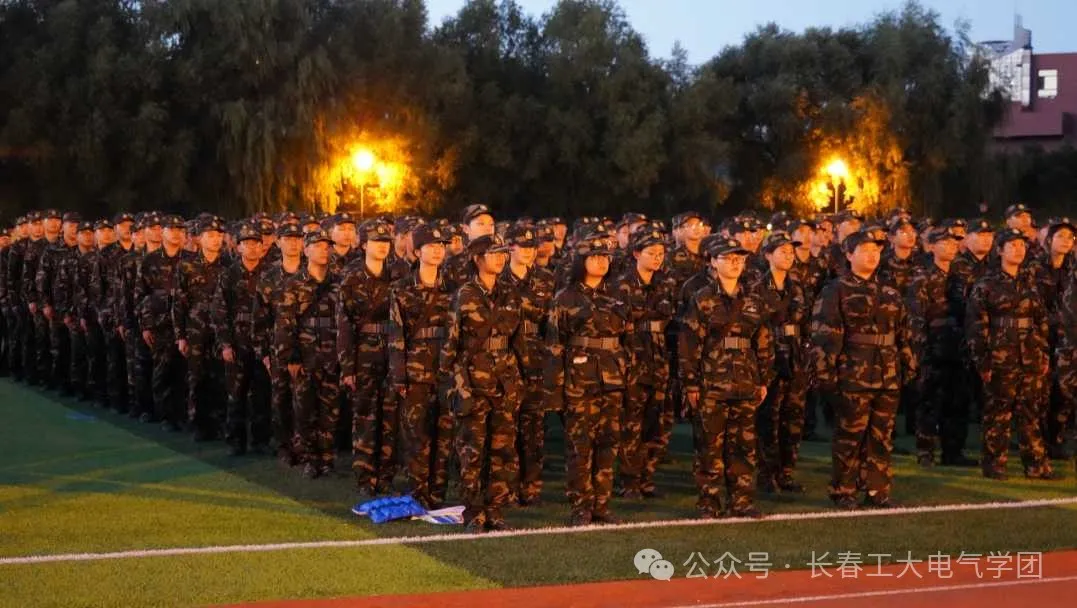当天晚上,南湖校区操场上,红旗飘扬,军歌嘹亮。全体24级新生身着整齐的迷彩服,精神抖擞,斗志昂扬。他们以饱满的热情和坚定的信心,迎接军训的挑战。