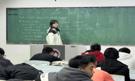 讲台上的学生自信满满,声音清脆。手中的笔在黑板上流畅滑动,思路清晰地讲解难题。他眼神专注,仿佛散发着智慧的光芒,同学们也听得格外认真,沉浸在知识的海洋中。