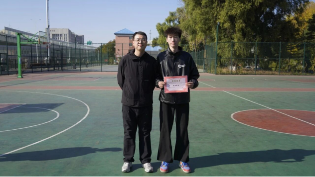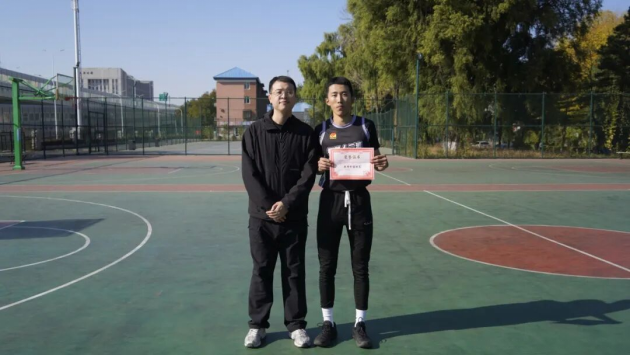 25级辅导员唐伟宸为最有价值球员李杭聪颁发奖状