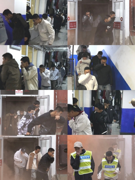 随着警报声响起,宿舍楼内的学生迅速反应,一手捂鼻、弯腰低姿,沿着预设逃生路线快速有序疏散,短短几分钟便全部撤离至室外安全区域。