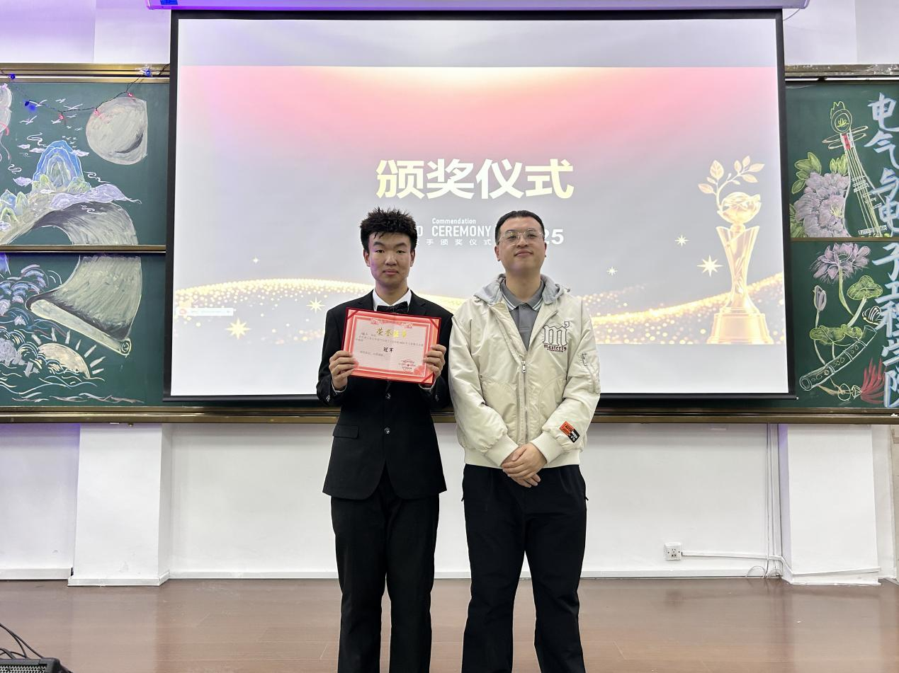 2025级辅导员唐伟宸为冠军周鑫成颁奖