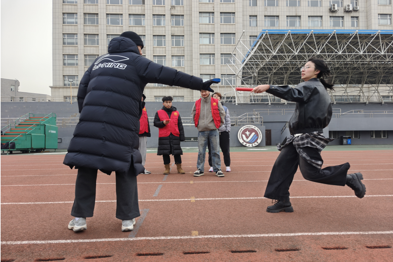 “冬韵凝心,接续热爱”冬日接力赛在操场如约举办。