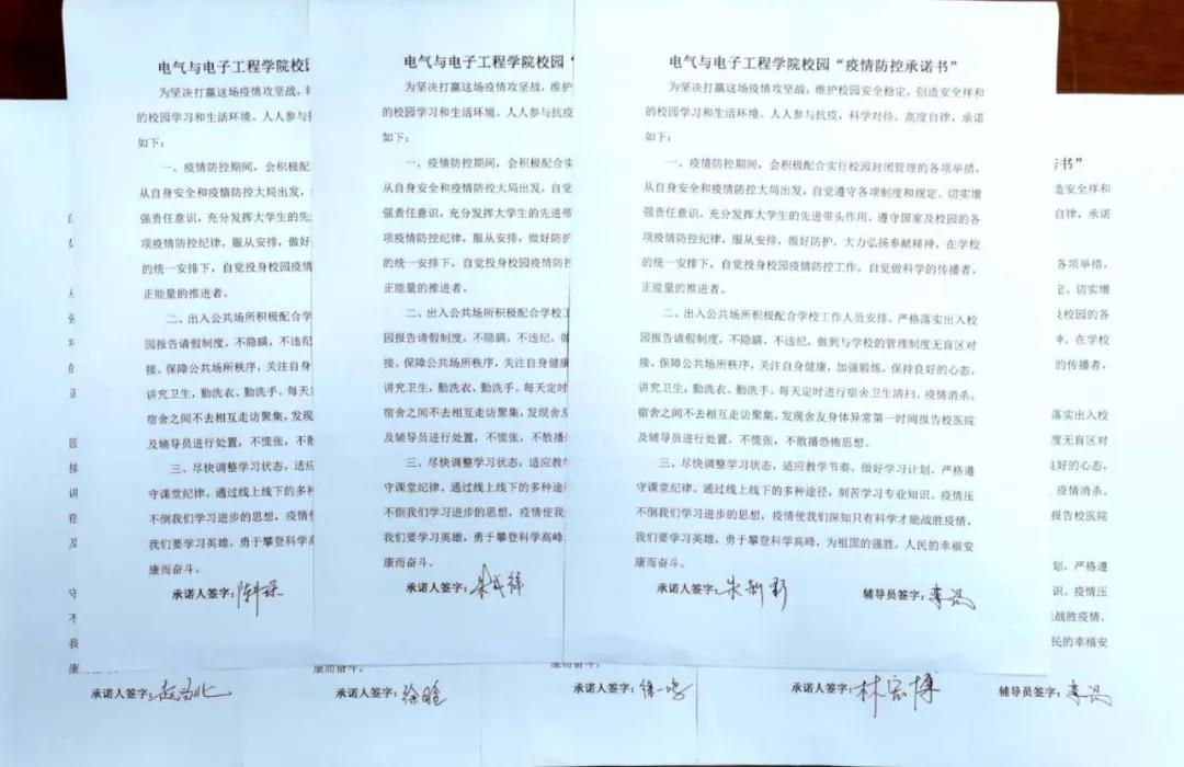 为坚决打赢这场疫情攻坚战,维护校园安全稳定,创造安全祥和的校园学习和生活环境。人人参与抗疫,科学对待,高度自律,承诺如下: