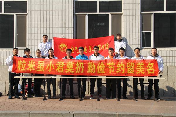 10月27日“我爱文明食堂”活动中,巨大的“粒米虽小君莫扔,勤俭节约留美名”红色条幅摆放着南湖校区餐厅门前,学院党员先锋队同广大师生一起,在横幅上郑重的签下自己的名字,表达自己的一份承诺,勤俭节约,将“光盘行动”进行到底。同时党员先锋队队员们还广泛的利用的宣传单、标语等形式,扩大了此次活动的影响力,积极宣扬了我校勤俭朴素的风尚,增进大家对文明月活动的了解。使更多的老师及同学们能重注用餐时节俭的细节,活动取得了圆满的成功。